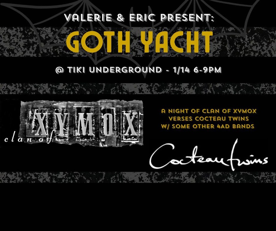 Goth Yacht experience with DJ Valerie & Eric from 6-9pm! Catch a night of Clan of Xymox verses Cocteau Twins with other 4AD bands. 21+ over